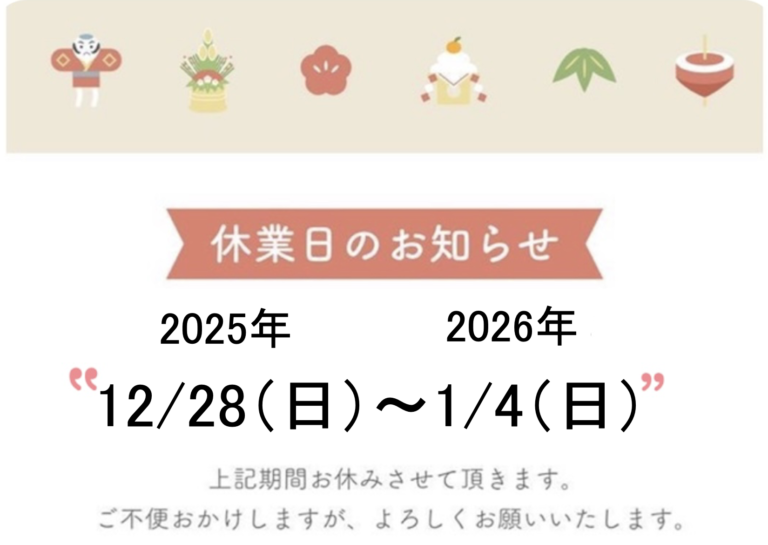年末年始のお休みについて(インプラント治療・矯正治療中の方に) 1.年末年始の診療スケジュールについて | 仙台市宮城野区のインプラントおすすめ歯科医院 ・年末年始の休診案内 | 仙台市宮城野